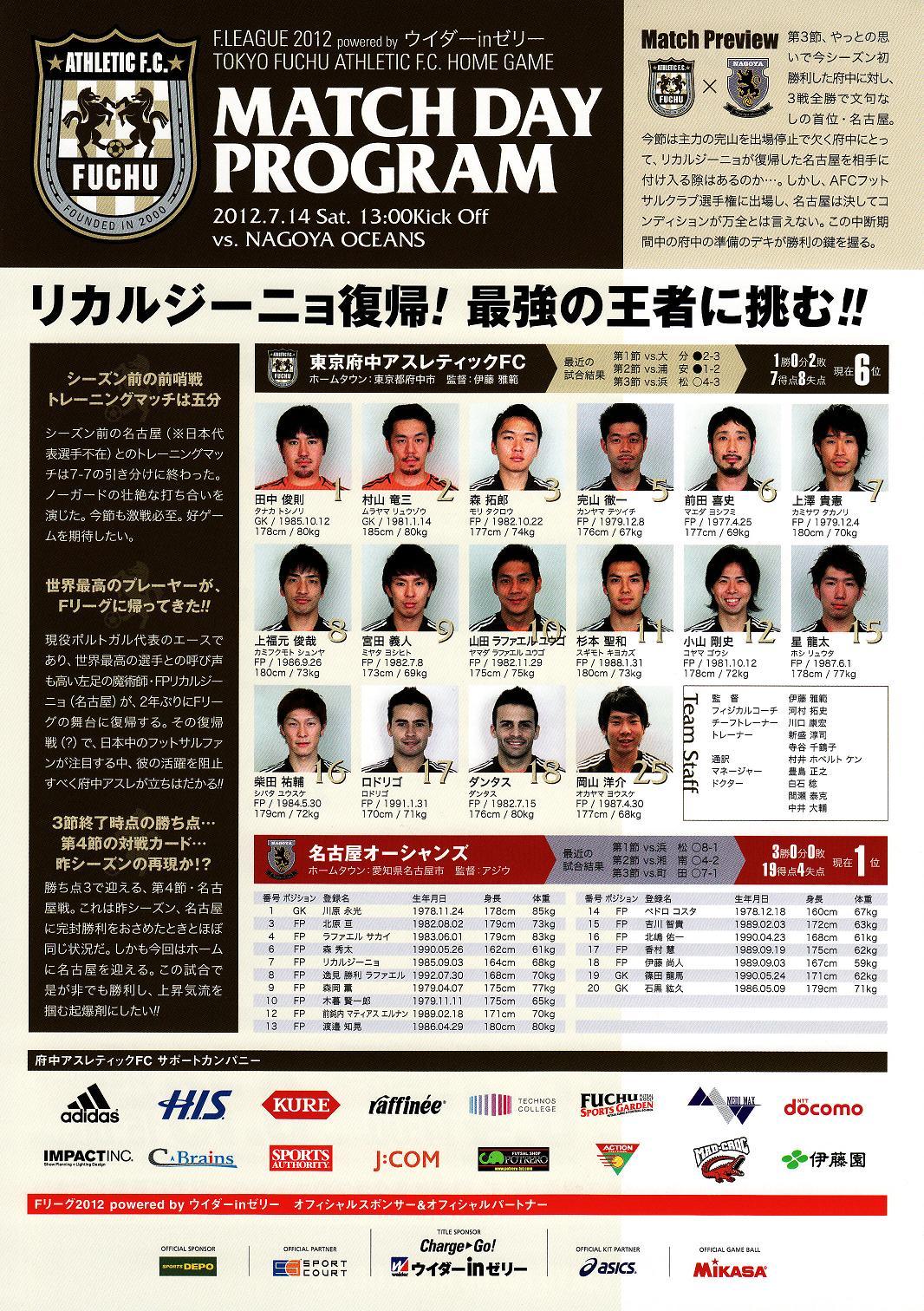 Fリーグ第4節 府中アスレティックFC vs 名古屋オーシャンズ