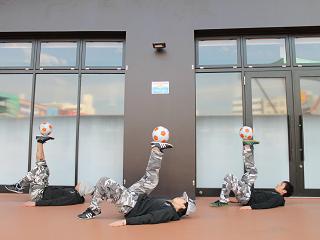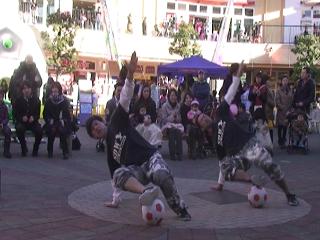 パフォーマンス後は来場者と一緒に球蹴り♪