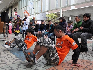 買い物客を対象に昼2回のパフォーマンス!