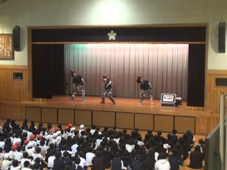 3時間目を利用して体育館で全校生徒を対象に、